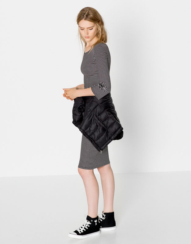 Comprei ultimamente dois vestidos na Pull & Bear, um deles foi este. Super práticos, adoro o estilo e muito versáteis. Continua a não ter preço ir à loja e pegar nas peças. É a minha opinião.